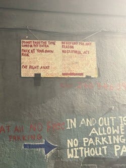 On one side of the block is Ted’s Bulletin, an upscale diner bar. On the other is a private parking lot with a sign instructing patrons not to commit criminal acts.