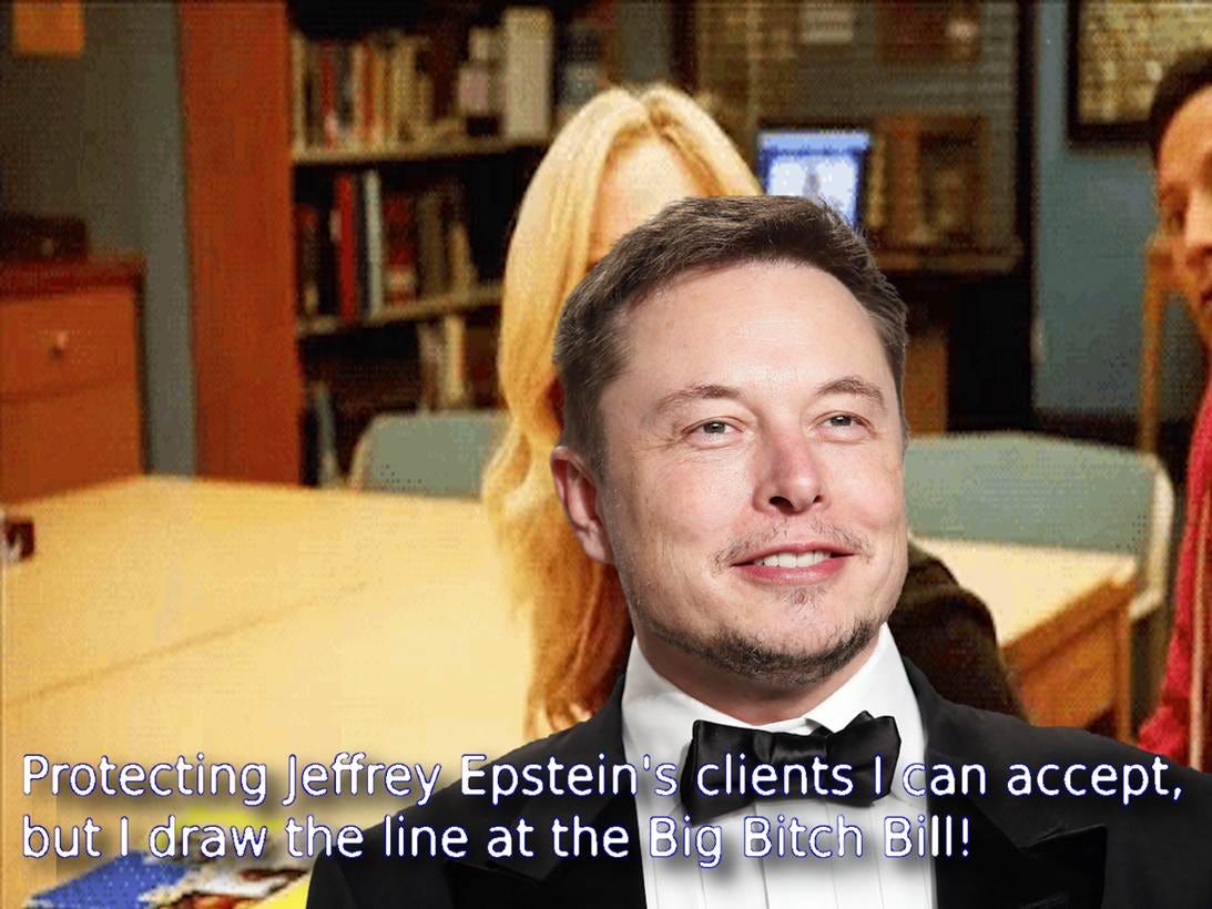 If Mr. Musk believed the president abused children, why did he donate hundreds of millions to the campaign and blow up Tesla’s reputation to work in the White House? Would Mr. Musk have been “fine” with child prostitution if Mr. Trump were more pliant to his needs? “Protecting pedophiles from prosecution, I can excuse, but I draw the line at the Big [Bitch] Bill!”