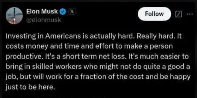 Elon Musk Endorses Post Suggesting Americans Are Too ‘Retarded’ To Do Skilled Jobs