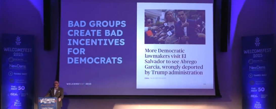 Mr. Yglesias entered dicier territory with a subsequent slide, entitled “BAD GROUPS CREATE BAD INCENTIVES FOR DEMOCRATS” alongside the Associated Press headline: “More Democratic lawmakers visit El Salvador to see Abrego Garcia, wrongly deported by Trump administration,” which covered lawmakers’ advocacy for the return of Kilmar Abrego Garcia, a Maryland resident whom Immigration and Customs Enforcement illegally, and without trial, renditioned overseas to CECOT, the 40,000-inmate megaprison in El Salvador. The public’s focus on the administration succeeded in bringing Mr. Garcia home for his day in court. If Mr. Yglesias meant other than abandoning immigrants to whatever cruel fate the Trump administration afflicts, he forgot to clarify. The whole of WelcomeFest unfortunately was made infamous by this slide.